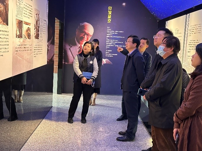 活动伊始,颜鹂带领工研院党支部一行参观了位于物理学院一楼的“我愿以身许国”王淦昌事迹陈列室,党委副书记邹安川为大家讲解了以王淦昌先生为代表的老一辈物理科学家追求真理、科学报国的光辉事迹。