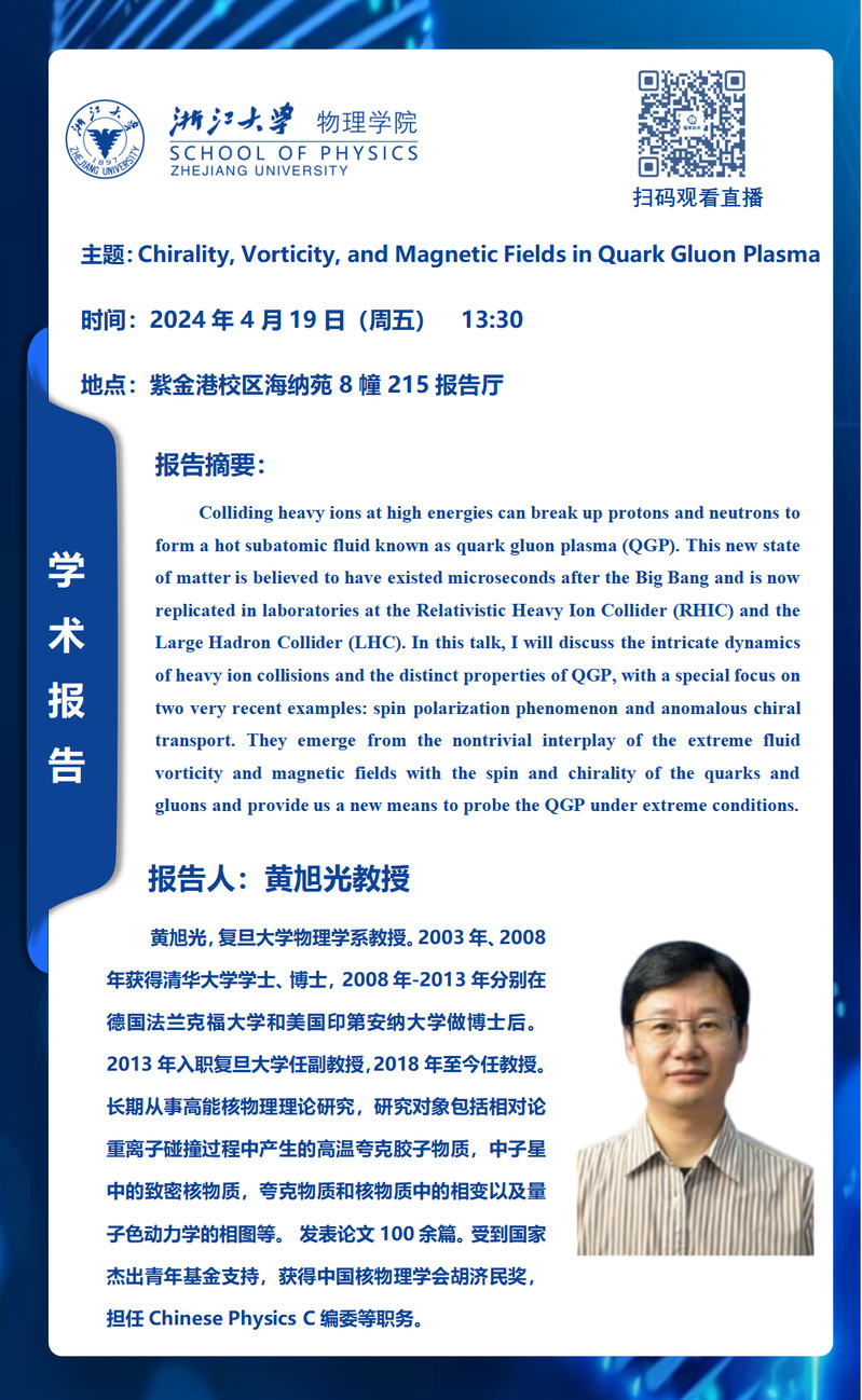物理学院黄旭光学术报告的通知(School of Physics Colloquium)