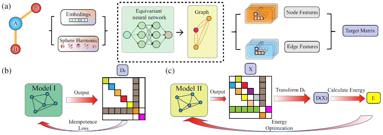 在材料科学、化学和物理研究中,密度泛函理论(DFT)是计算电子结构、预测材料性质的核心工具。 然而,传统的 DFT 计算依赖于“自洽场”迭代方法,其核心步骤——哈密顿矩阵对角化——计算代价高昂,成为制约大规模、高通量模拟的瓶颈。 近年来,尽管机器学习已成功应用于预测 DFT 计算结果,但这些“数据驱动”模型严重依赖预先构建的、海量且成本高昂的计算数据集,且难以保证严格的物理约束。