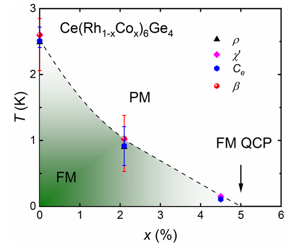图2. Ce(Rh1-xCox)6Ge4的温度-掺杂相图