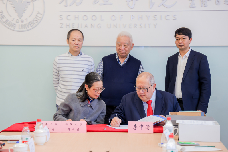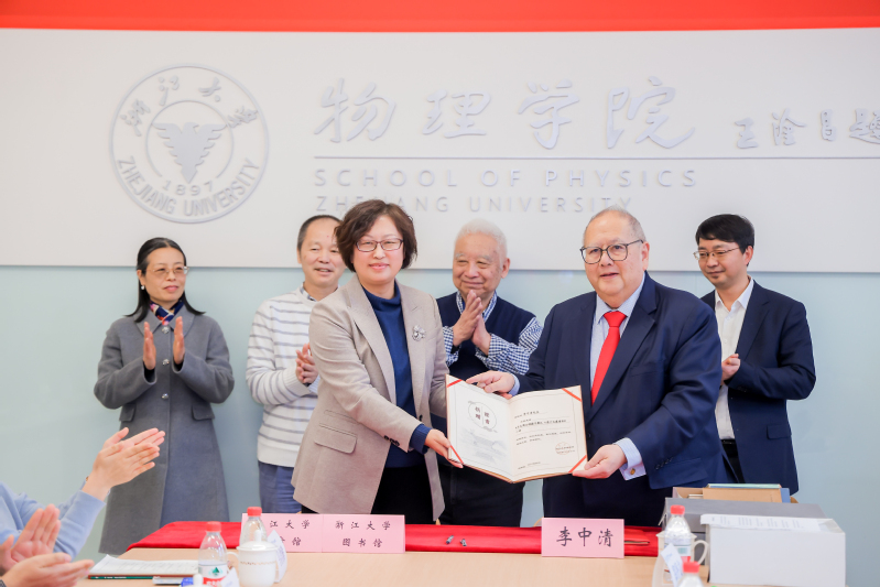 浙江大学党委常委、副校长周江洪,香港科技大学言爱基金社会科学讲席教授、李政道先生长子李中清,中国科学院院士、浙江大学物理学院院长林海青,中国高等科学技术中心学术委员会副主任、研究员王垂林,浙江大学图书馆党委书记王苑,发展联络办公室副主任、校友总会常务副秘书长吴维东,党委宣传部副部长代玉启,档案馆副馆长郑丹文,物理学院党委副书记马君雅,浙江近代物理中心教授王凯、杨李林等出席仪式,物理学院师生代表共同见证这一重要时刻。活动由物理学院党委副书记(主持工作)、副院长马晨华主持。