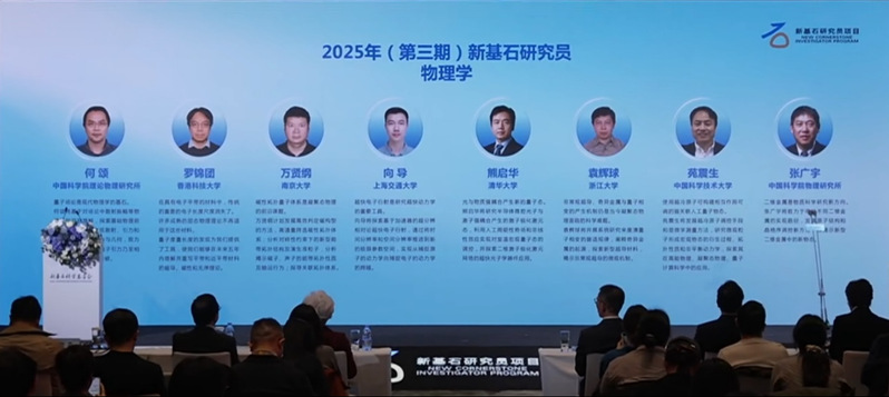 新基石研究员项目是由腾讯公司出资、中国科学技术协会指导的公益性质基础研究资助项目,旨在支持中国内地及港澳地区全职科学家开展原始创新研究。项目于2022年4月30日启动,先前两期共资助了104位科学家。2025年第三期共有35位研究人员入选,其中数学与物质科学领域19人(物理学领域和化学领域各8人、数学与理论计算机领域3人),生物与医学科学领域16人(生物学领域10人、医学科学领域6人)。