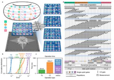 图1:昆仑量子处理器架构图以及双变量自行车码的非局域稳定子提取线路