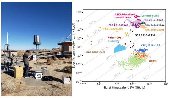 图3: 快速射电暴(FRB)与其它射电瞬变源的光谱光度图
