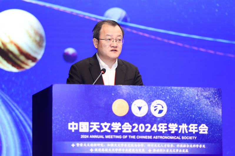 韩占文指出,中国天文学会始终坚持为科技工作者服务,为创新驱动发展服务,为提高全民科学素质服务,为党和政府的科学决策服务。过去一年来,中国天文科技工作者面向世界天文学前沿和国家重大需求,取得了一系列重要成就。中国天文学会期望浙江大学能尽快建立起完整的天文学教育和研究体系,为我国天文学工作贡献重要力量。期望通过这次学术年会,推进学术交流,激发创新思维,瞄准世界天文科技前沿,进一步谋划我国天文事业发展大计,助力国家社会经济和科技发展。
