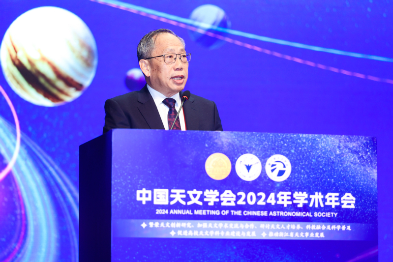中国天文学会名誉理事长、南京大学方成院士,中国科学院高能物理研究所、清华大学李惕碚院士,宁波大学校长蔡荣根院士,浙江大学林海青院士、常凯院士,国家自然科学基金委员会、中国科学院、浙江省科学技术协会、全国科技名词委等部门相关负责人出席开幕式。开幕式由中国天文学会副理事长袁业飞主持。本次学术年会,由中国天文学会主办,浙江大学和浙江省天文学会承办。年会分为大会报告、专题讲座与科普报告和9个分论坛,近1300位代表参会,共同研讨天文学的进展,分享最新成果和见解。